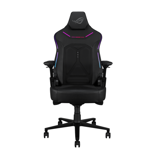 ROG Courser 电竞椅具备可调式腰靠、4D 扶手、可提供流畅气流的冷压腰垫、超宽大座垫、磁吸式头枕、动态倾仰机制以及 Aura RGB 灯效