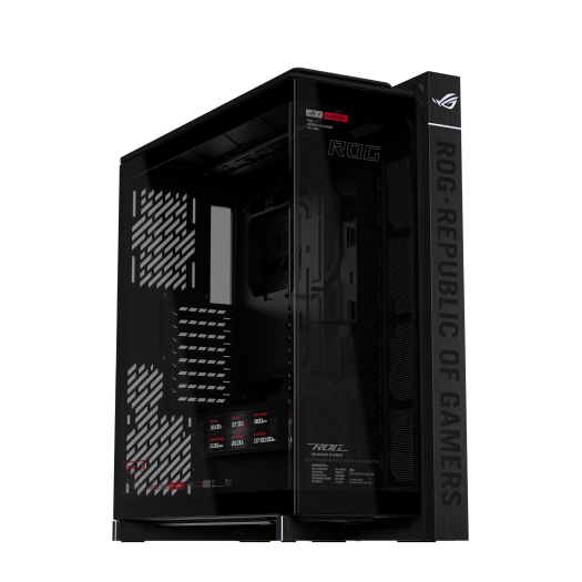 ROG STRIX HELIOS 太阳神 GX601S EATX 中塔电竞机箱,配备双面钢化玻璃侧板、支持最长 450mm 的显卡、铝合金框架与前面板、显卡支架,并可容纳 420mm 冷排