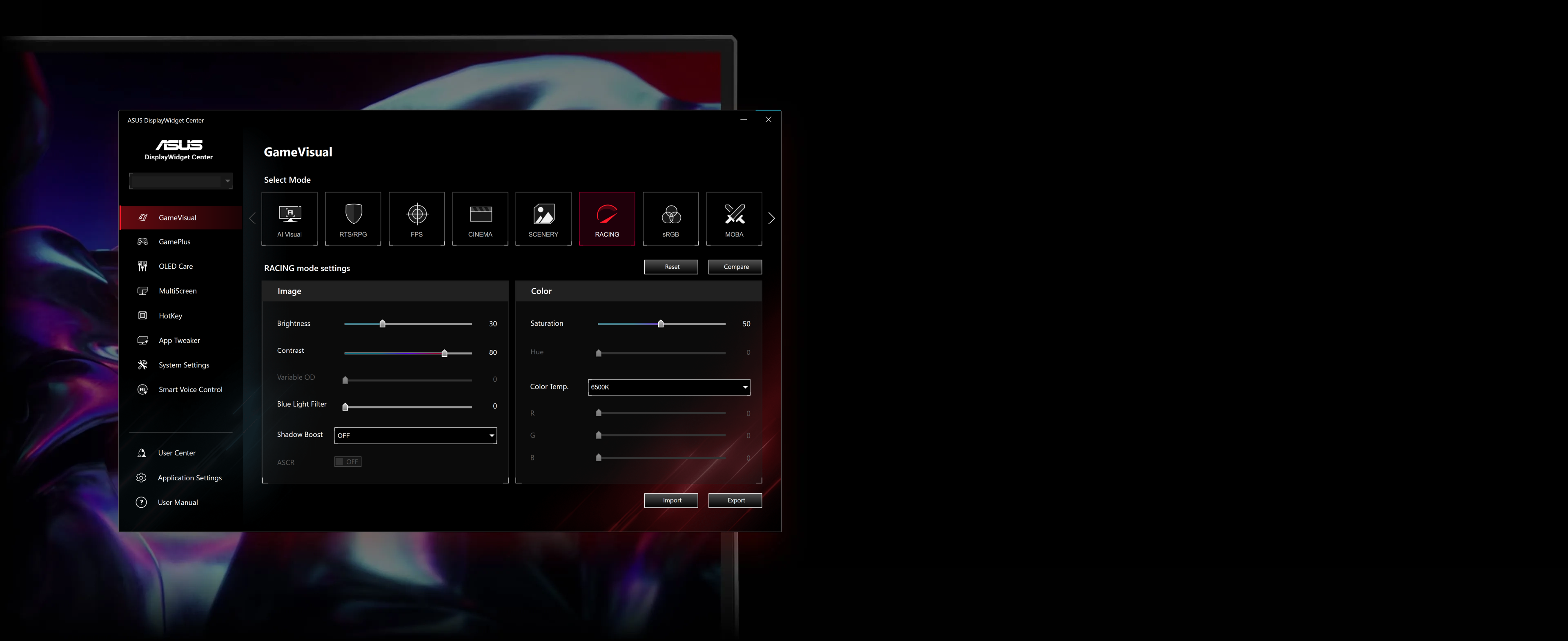 通过直观的 DisplayWidget Center 应用程序轻松调整显示器设置,无需显示器上的实体按键。轻松自定义不同游戏和应用程序的设置。