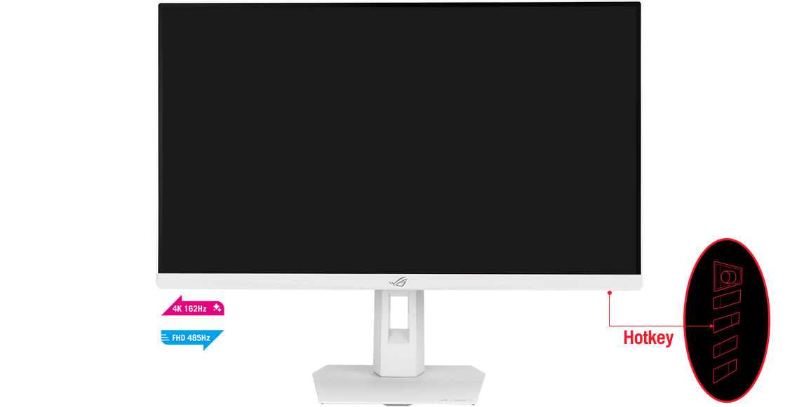 ROG STRIX XG27UCGR-W 电竞显示器凭借惊艳的双模功能打破常规。这款 27 英寸显示器让您只需点击热键,即可从令人惊艳的 4K @ 162 Hz 切换到令人震撼的 FHD @ 485 Hz 视觉效果。