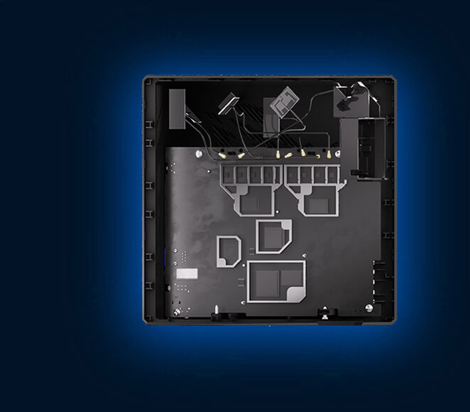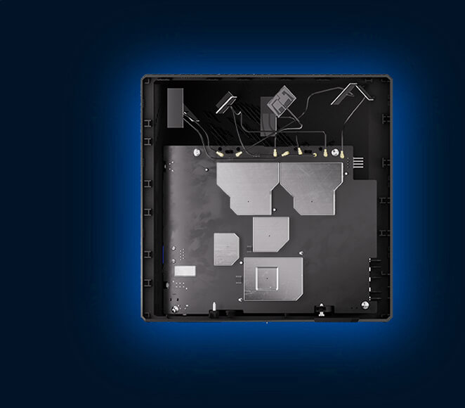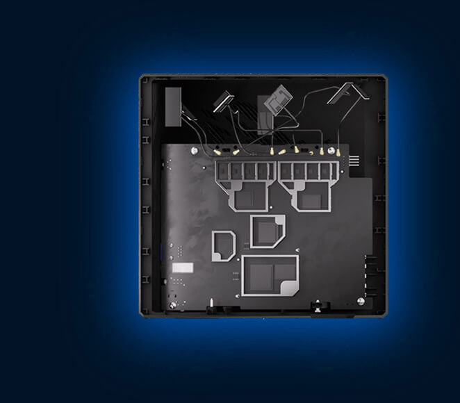 Slash 斜线 PCB 设计实现双面散热,提供出色的热驱散能力,从而确保网络的可靠性。优化的气流设计采用碳纳米涂层铝制散热板,并搭配定制的通风口和散热片。