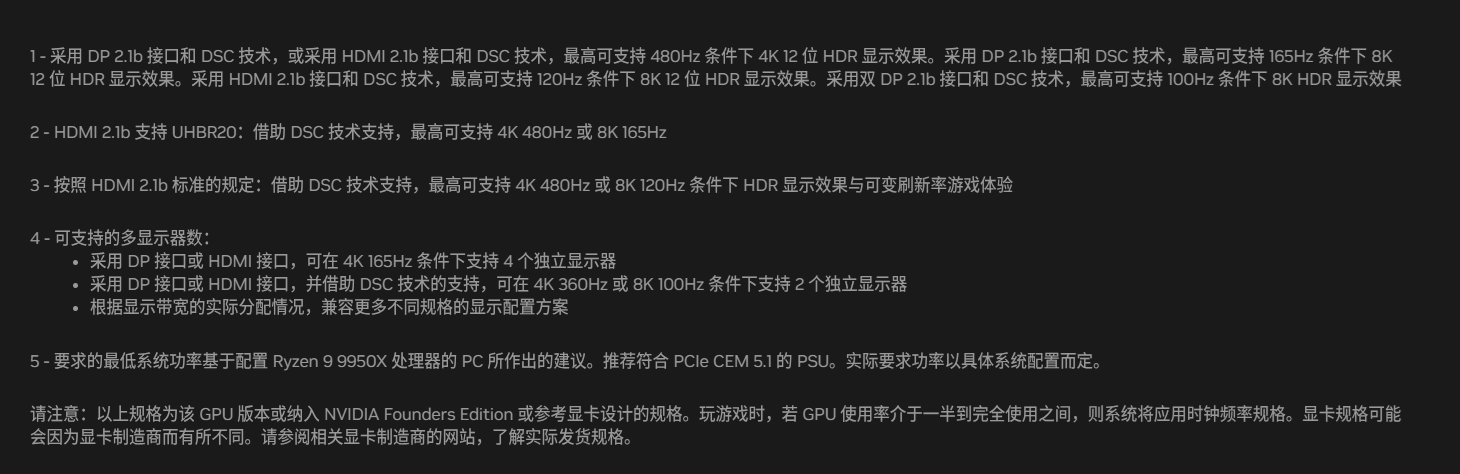 举例参考:GeForce RTX 5080 游戏与绘图用显卡|NVIDIA(规格->查看完整规格)